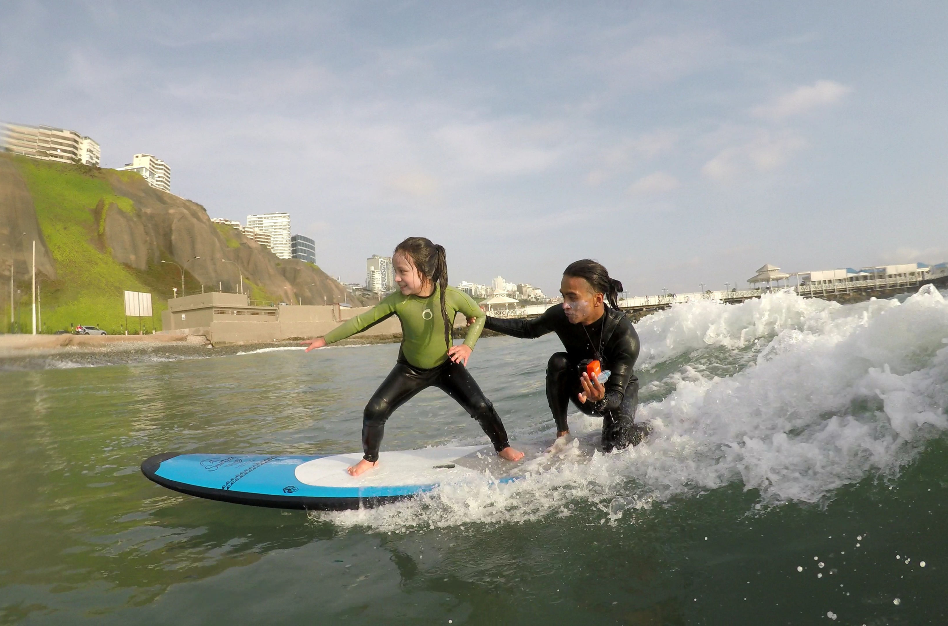 Vive tu primera experiencia de surf integrándote a un pequeño grupo de 2 o 3 alumnos por instructor.